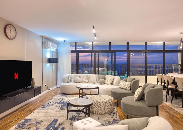 Staying at the spacious Cairo Homes Luxury 4Br Apartment With Balcony & Nile View Maadi, guests can relax on a terrace a 16-minute walk from HSBC Bank Egypt. Wi-Fi is provided for both business and leisure activities.